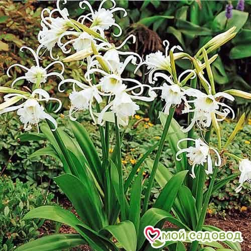 Растение высотой 45-60 см получило свое название благодаря лепесткам оригинальной формы. Они тонкие, закрученные в виде паучьих лапок. Цветки собраны в соцветия-зонтики по 7-12 штук. Их окрас может быть разнообразным: белым, красным, розовым, оранжевым. Цветок еще называют нерине, перуанская лилия, и известен он садоводам во всем мире. Необычное растение можно высаживать на клумбе или выращивать в комнатных условиях. Применяют для создания букетов. ПОСАДКА И УХОД Для высаживания теплолюбивой лилии подбирают место, хорошо освещенное солнцем. Почва должна быть легкой, рыхлой, водопроницаемой. Растение нетребовательно к уходу. Кустики поливают регулярно, но умеренно. После поливанужно рыхлитьгрунт, убирать сорняки. Рекомендуется в период цветения несколько раз подкормить. В нашем интернет-магазине вы сможете купить Лилии Так же возможно вас заинтересуют Лилия-гигант (ОТ-гибрид) Эприкот Фадж и Лилия восточная махровая (ориенталь) Софт Мьюзик .